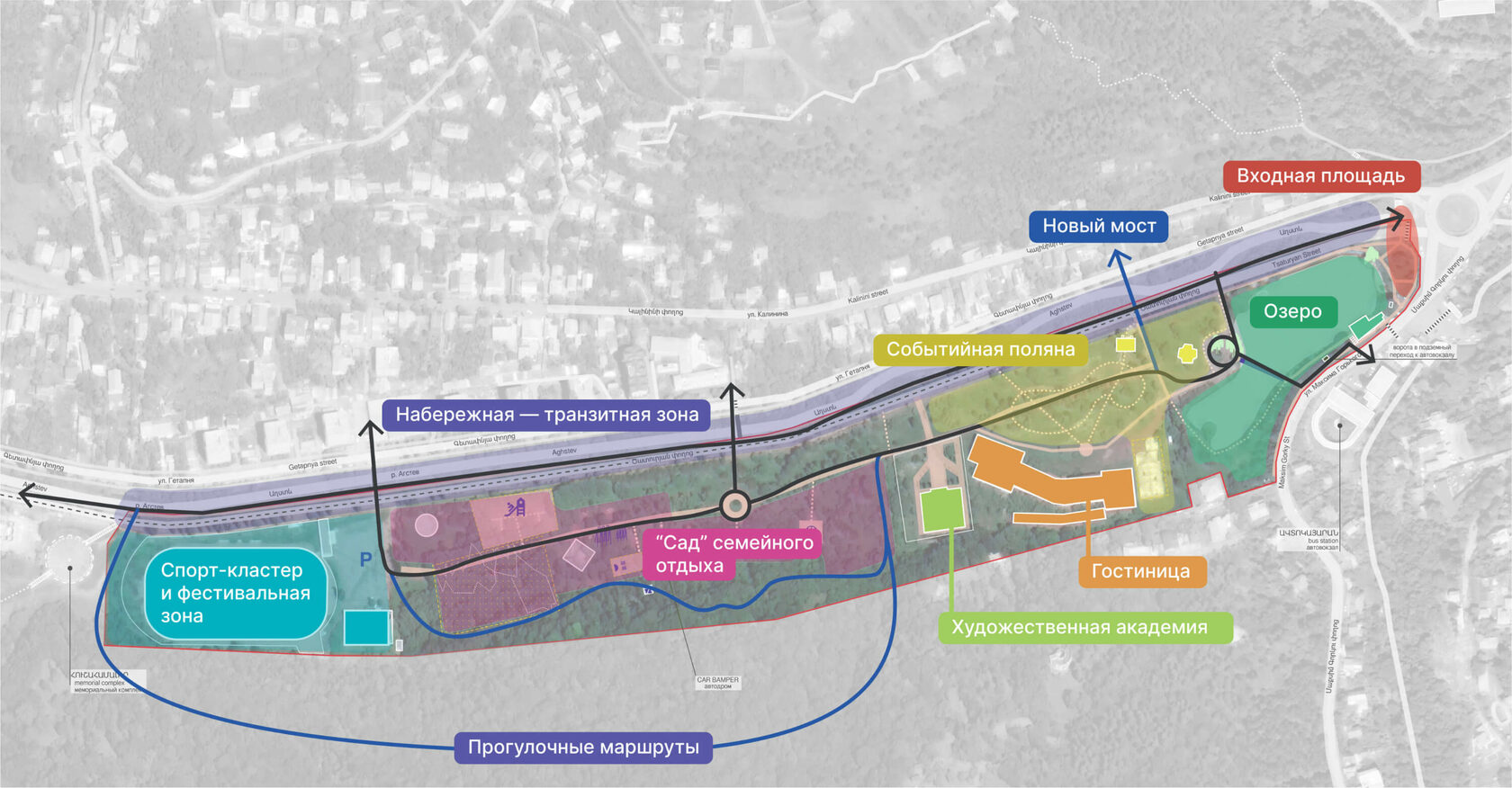 активный отдых в природной зоне: детские и спортивные зоны, аттракционы, тир, йога, кино, павильоны для мероприятий и отдыха. Безопасные кострища и возможность проведения пикников на полянке у леса. Специальные места для курения (удаленные от площадок). Сохранение парка Verev, спортивных площадок, картин по советским мультфильмам. Возможно, место для выгула собак, контейнеры для благотворительного сбора корма, пакетики для уборки за питомцами
